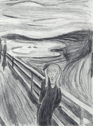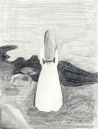 During my first semester at Chaffey College I took a drawing class. One of our assignments was to take pictures from art history and redraw them. Of course, I choose a couple of Munch images. Here are some results: